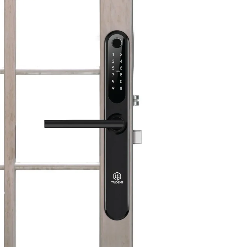 Custom-made for Malaysian Metal Gate (Grill Doors) is the MANTA PRO – Newest Slimline Multi Smart Lock. Enter with Fingerprint, Passcode, RFID Card and Override Key / USB Port for Emergency. Do not let the hassle of having extra padlocks at your grill stop you from having fully keyless lifestyle! Upgrade your metal grille gate lock to the Trident MANTA PRO!