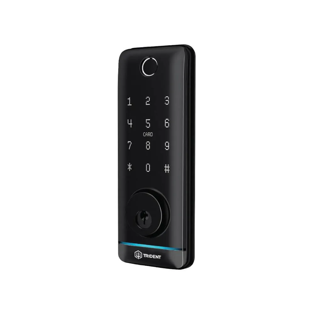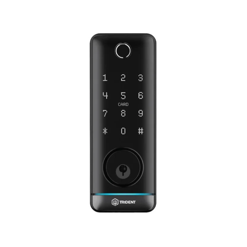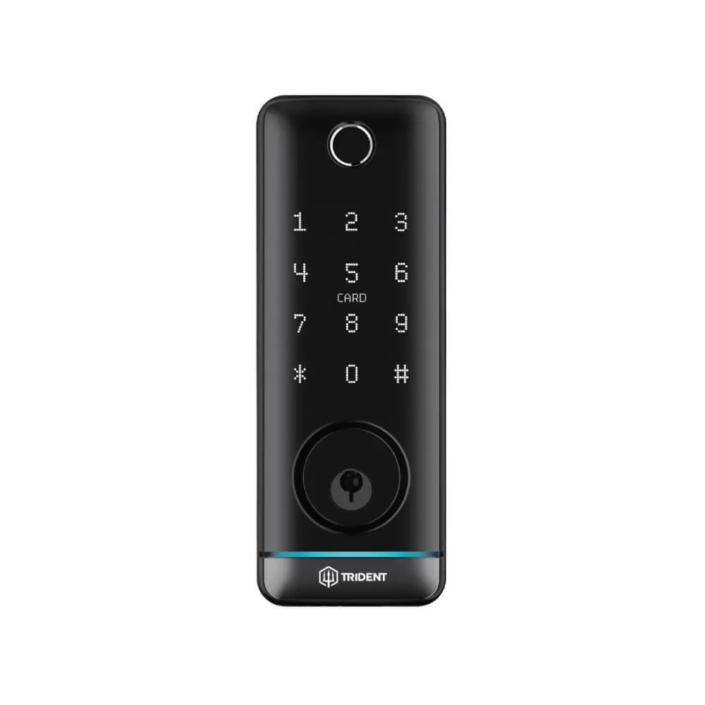 SO MANY FEATURES IN ONE SMALL, STRONG LOCK – THE TRIDENT MERA DEADBOLT LOCK. The Ultra Smart Deadbolt Digital Locks comes complete with Fingerprint, Bluetooth, Code, Card and Overwrite Key. Built-in Tuya Bluetooth functions, the Mera can be linked with the Tuya Wireless Gateway.